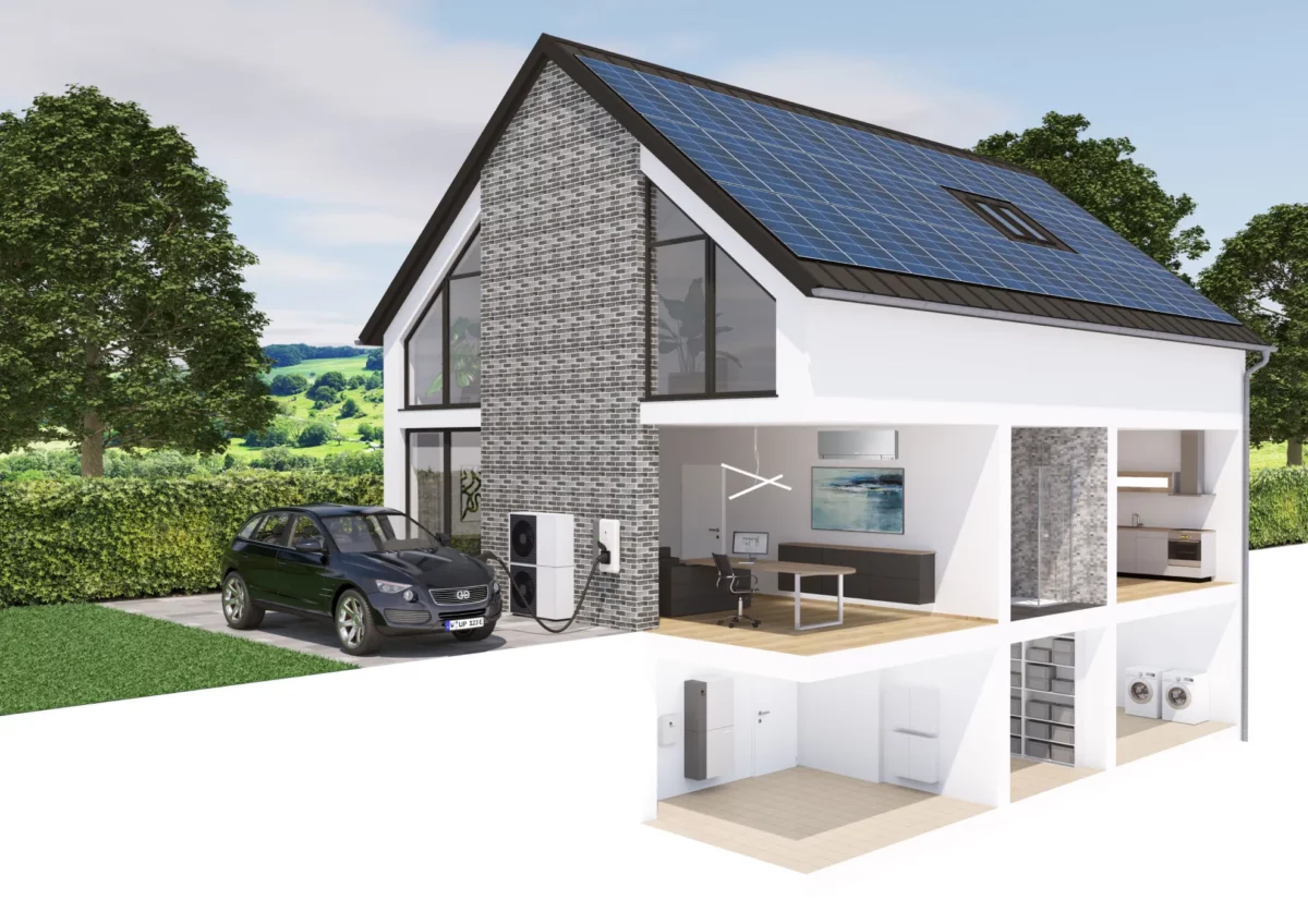 Nachhaltige Eigenstromversorgung für ein Einfamilienhaus. Effiziente Kombination aus PV-Anlage und Speicher maximiert die Unabhängigkeit von externen Stromanbietern.